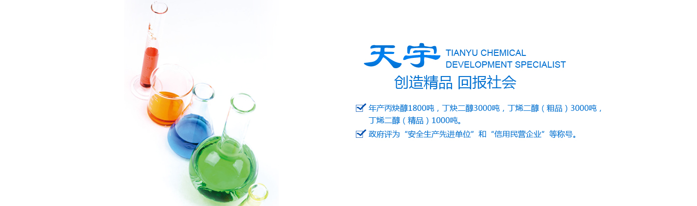 德州天宇化學(xué)工業(yè)有限公司成立于2002年5月,是一家集研發(fā)、生產(chǎn)和銷(xiāo)售于一體的高新技術(shù)企業(yè)。公司地處交通便利的德州天衢工業(yè)園、濱德高速出口處,西臨104國(guó)道和京滬鐵路,是國(guó)內(nèi)生產(chǎn)丙炔醇、1,4-丁炔二醇、1,4-丁烯二醇的企業(yè)。
