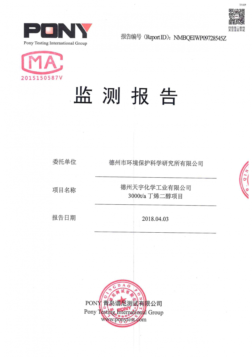 德州天宇化學工業(yè)有限公司危險廢物污染環(huán)境防治信息公開表